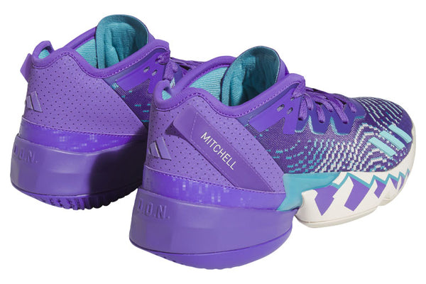 The future of basketball is all about speed, and Donovan Mitchell is as fast as they come. The newest signature shoes from Mitchell and adidas Basketball are built specifically to elevate the on-court movements of one of the game's fastest, most dynamic scorers. Ultralight Lightstrike teams up with a LIGHTLOCK upper for a snug fit and a propulsion system that won't weigh you down. A totally unique rubber outsole is designed to generate traction where you need it most, so every hard-charging cut and head fake has total support. Mitchell's Spida logo and signature graphics provide the finishing touch. Made in part with recycled content generated from production waste, e.g. cutting scraps, and post-consumer household waste to avoid the larger environmental impact of producing virgin content.