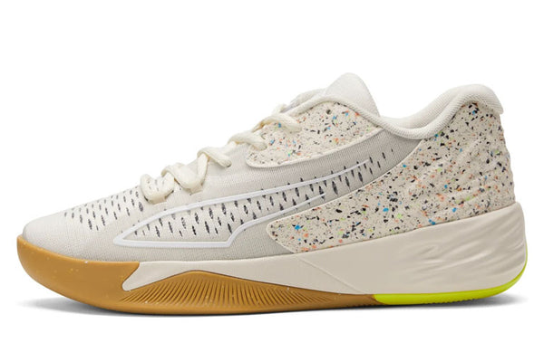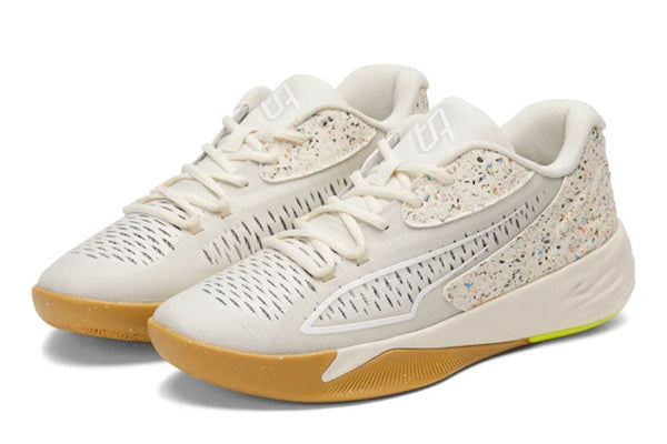 The first women’s signature basketball shoe in more than 10 years, Stewie 1 Reintroduce highlights Breanna Stewart’s amazing talent with a glacier rock-inspired aesthetic. The flecked upper evokes the geological formations found at Washington State’s stunning Mount Rainier, while a bespeckled gum sole continues the theme. Juxtaposing the neutral palette is a pop of neon yellow that represents the star forward’s bright presence on the court. Featuring the same statement-making sculptural wrap-around heel, intricate outsole, and delineated Formstrip as the original, along with PUMA Hoops tech, including NITRO foam, you’ll want to become well acquainted with this distinct design.
